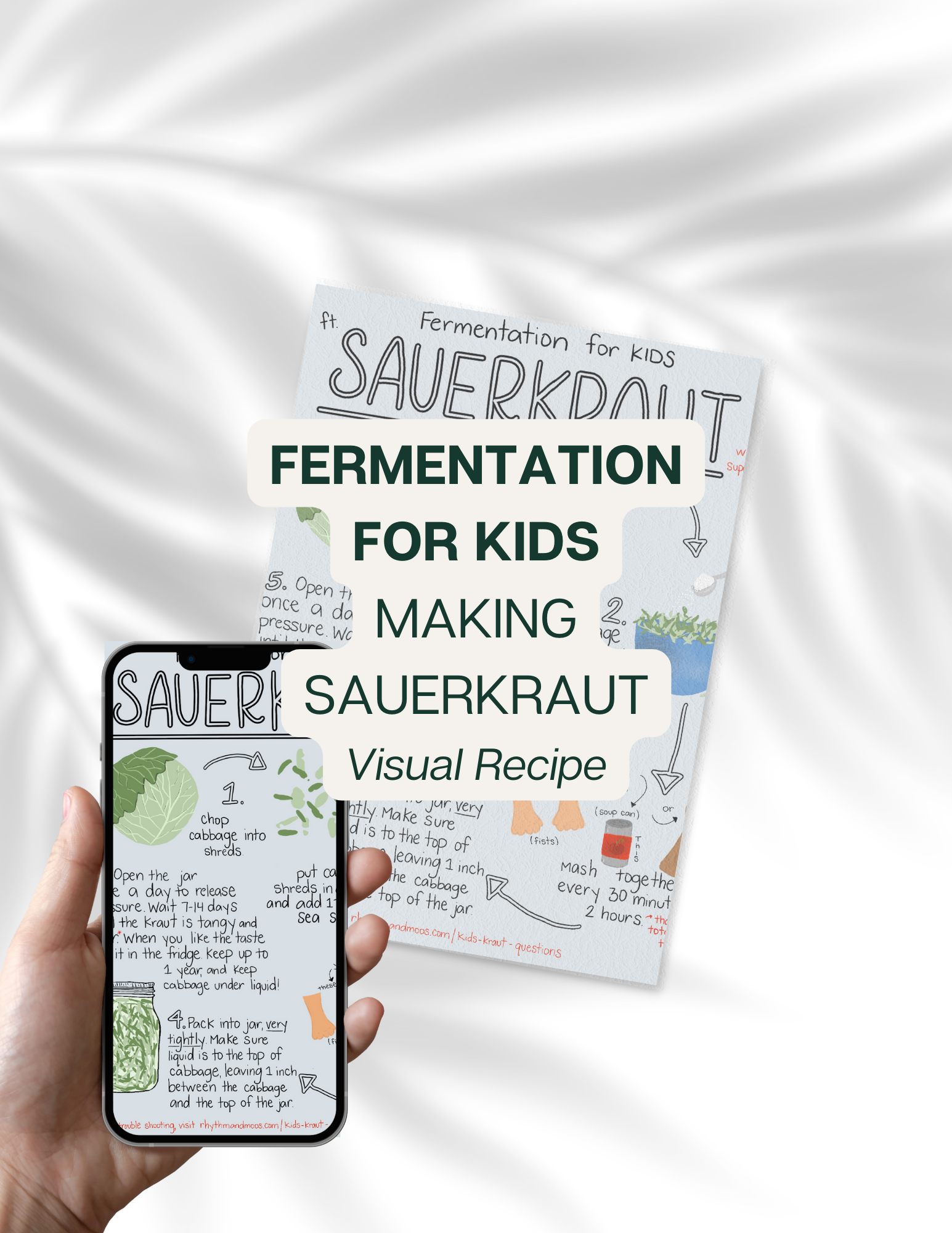 Download our free visual recipe that will teach you and the kids how to make sauerkraut in simple, straightforward steps.